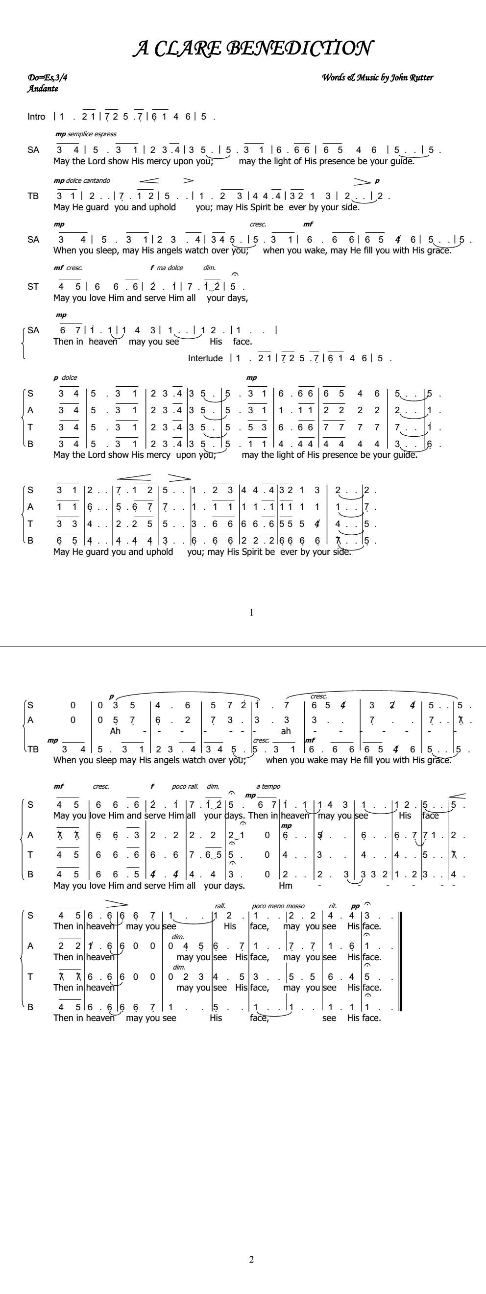 A CLARE BENEDICTION | Words and music by JOHN RUTTER | Do=Es; 3/4; Andante |