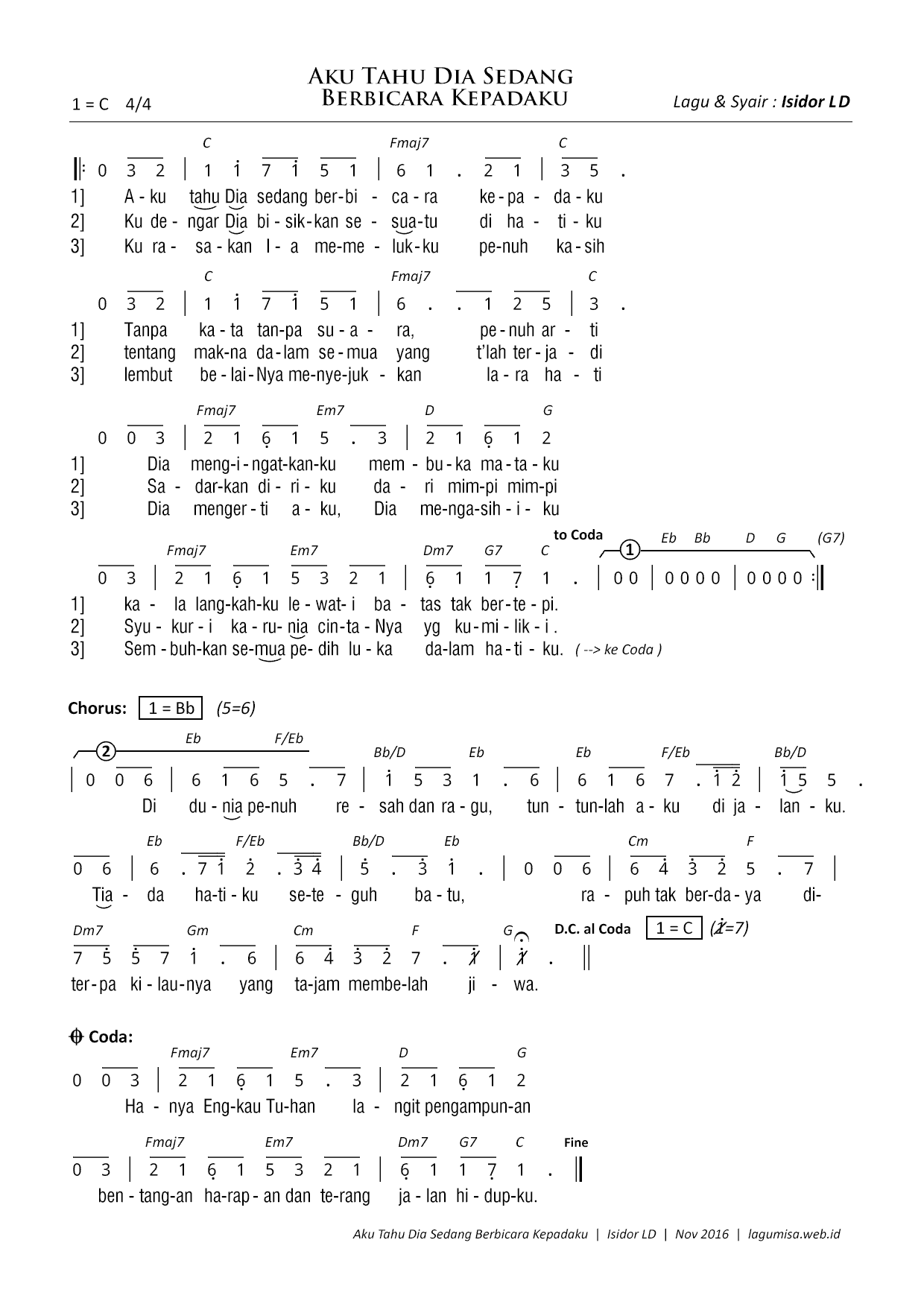 AKU TAHU DIA SEDANG BERBICARA KEPADAKU | Lagu & Syair : Isidor LD | Do=C, 4/4 |
