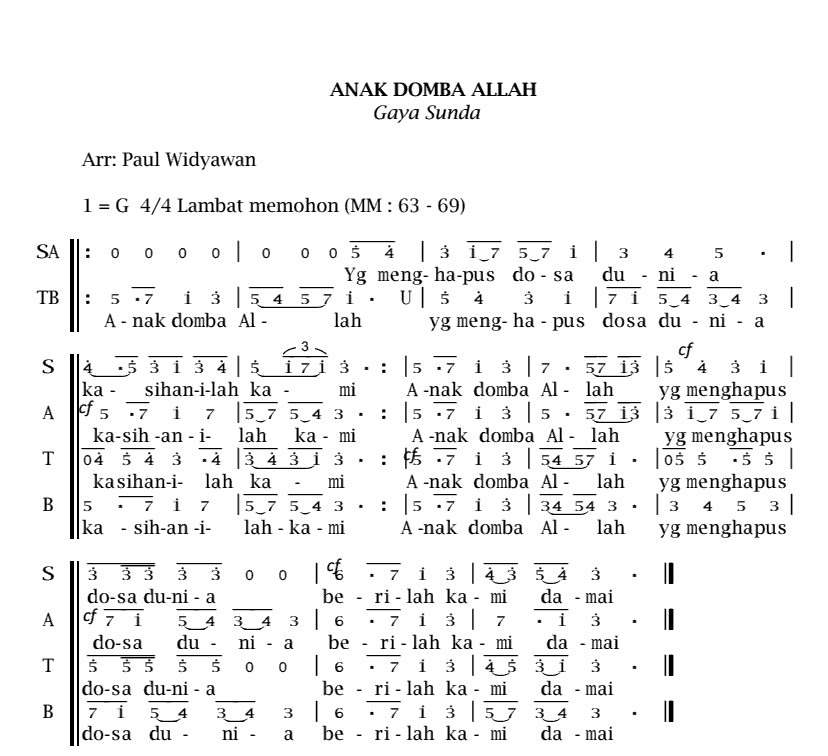 ANAK DOMBA ALLAH | (Gaya Sunda) | do=G 4/4 (1/4=69) Lambat memohon | Lagu: Sukamto | Arr: Paul Widyawan |