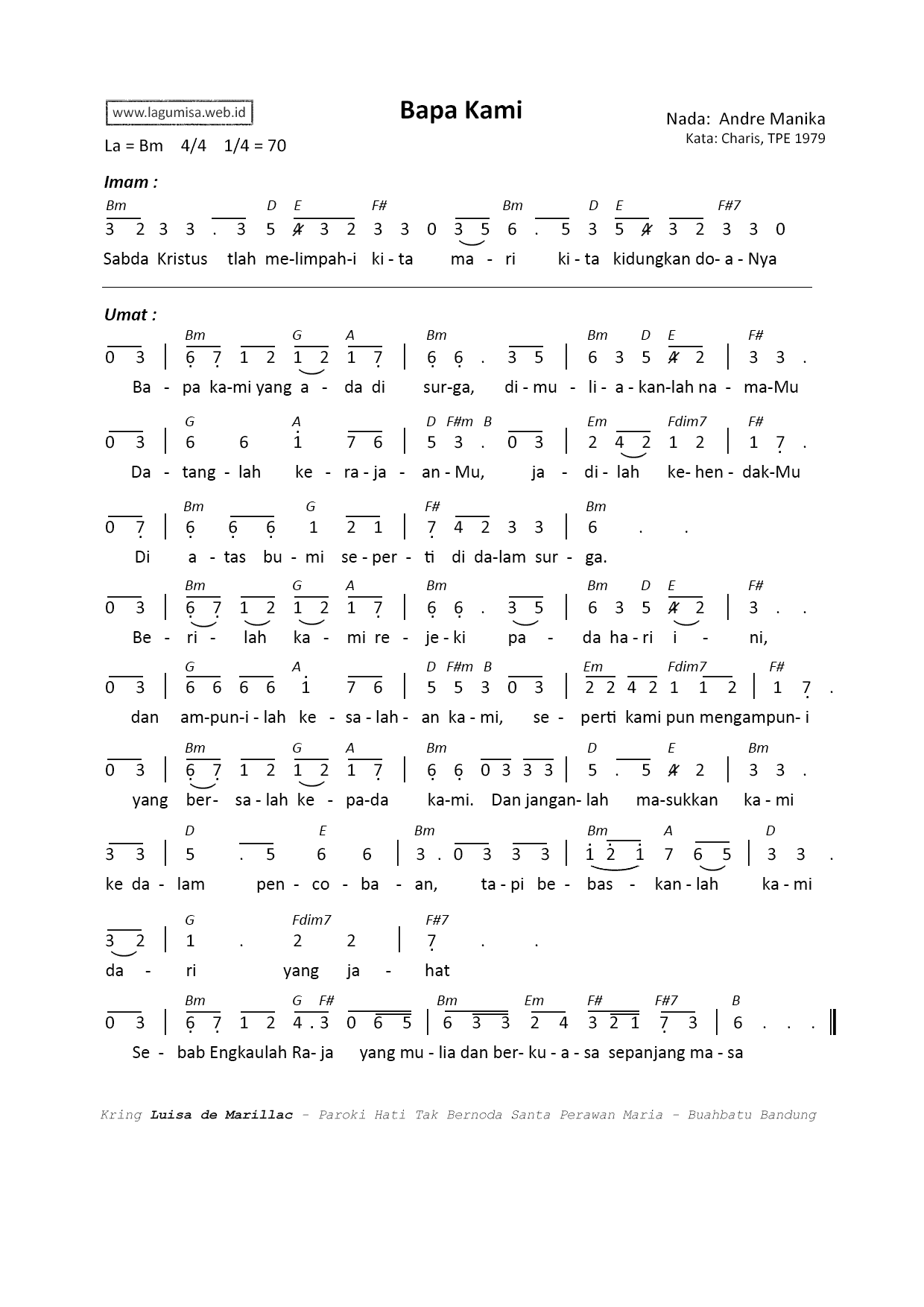 BAPA KAMI | Ordinarium ILSKI I | Nada: Andre Manika | Kata: Charis, TPE 1979 | La=Bm 4/4 (1/4=70) |
