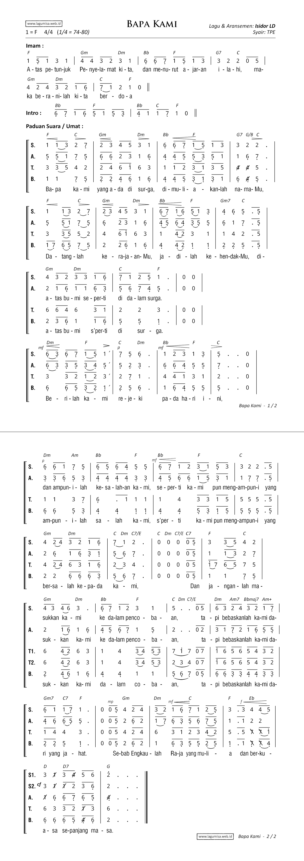 BAPA KAMI [ ISIDOR LD ] | Lagu & Aransemen : Isidor LD | Syair : TPE | Do = F, 4/4 (1/4=74-80) |