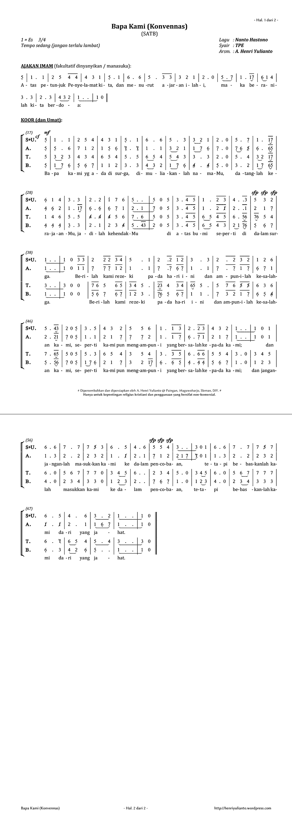 BAPA KAMI [ KONVENNAS ] | do=Es, 3/4, Tempo sedang | Lagu: Nanto Hastono | Syair: TPE | Arsm: A. Henri Yulianto |