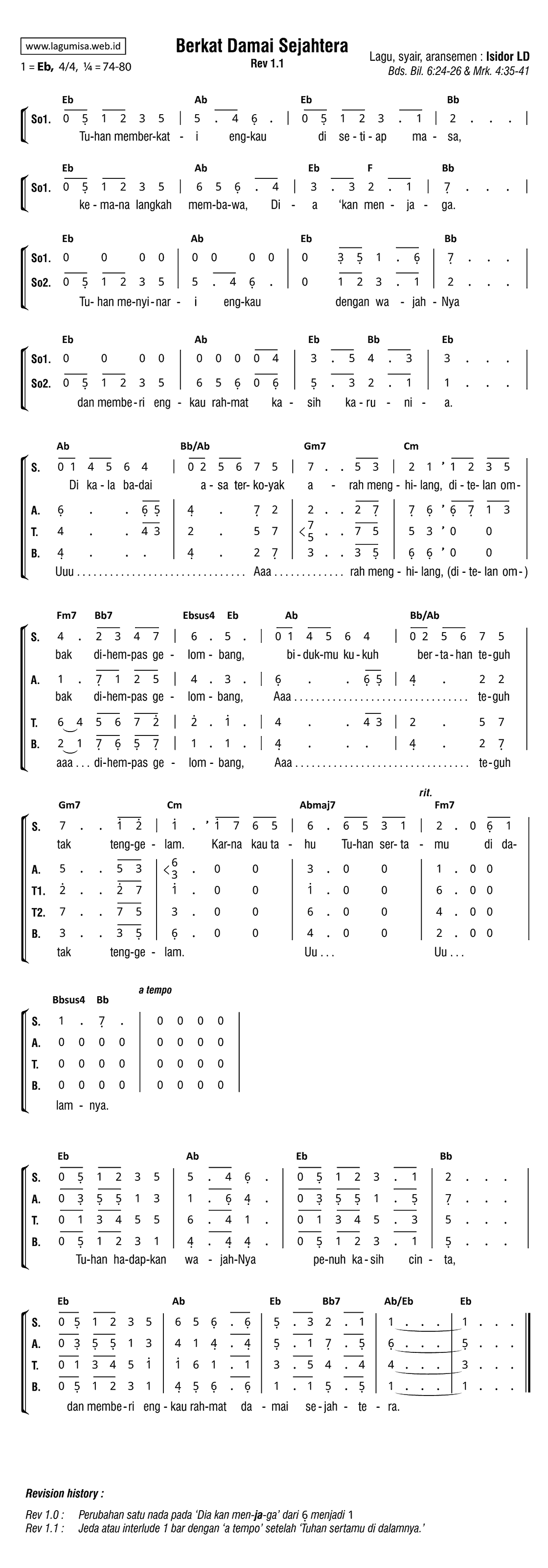 BERKAT DAMAI SEJAHTERA | REVISI 1.1 | Lagu, Syair, Aransemen : Isidor LD | Do = Es; 4/4 |