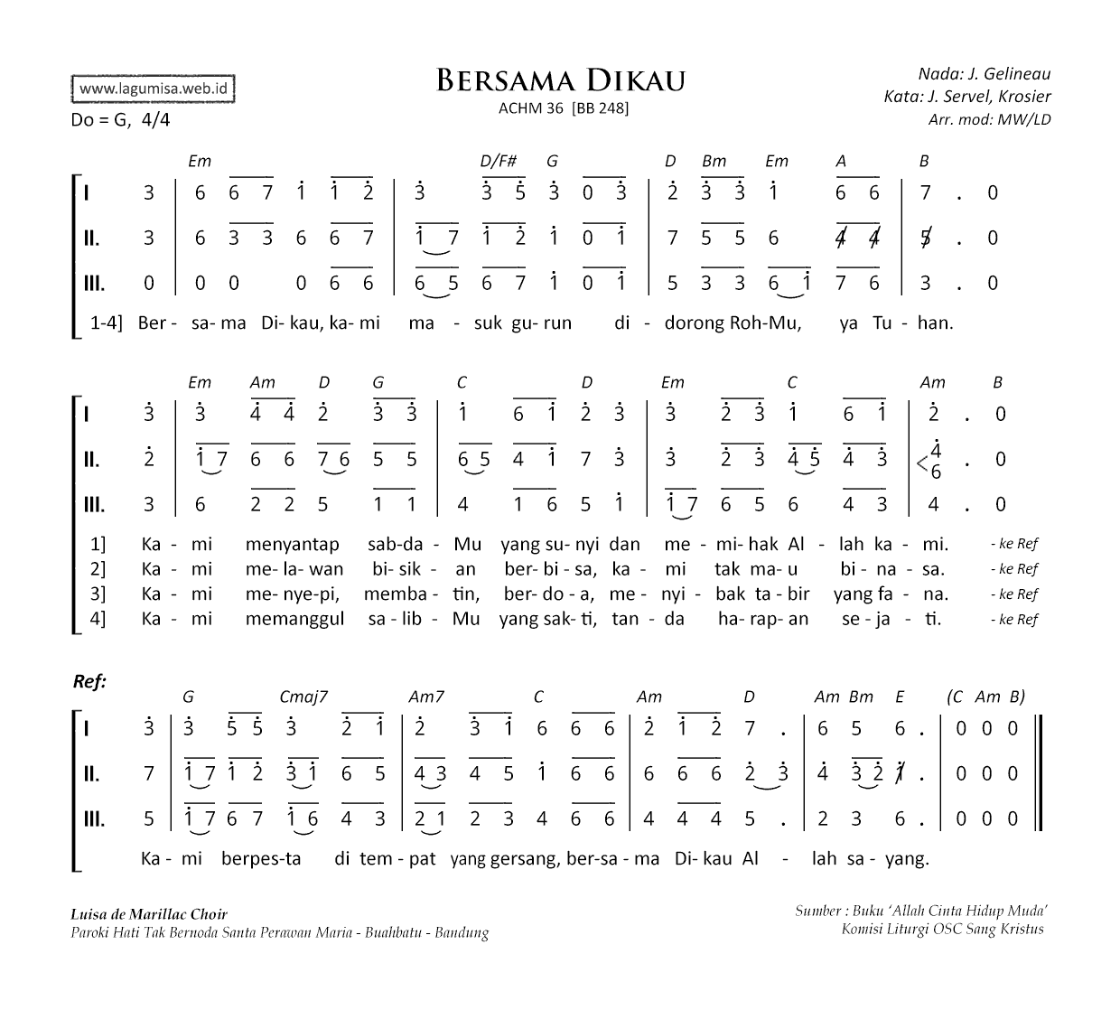 BERSAMA DIKAU ACHM 36 [BB 248] Nada: J. Gelineau | Kata: J. Servel, Krosier Do=G, 4/4