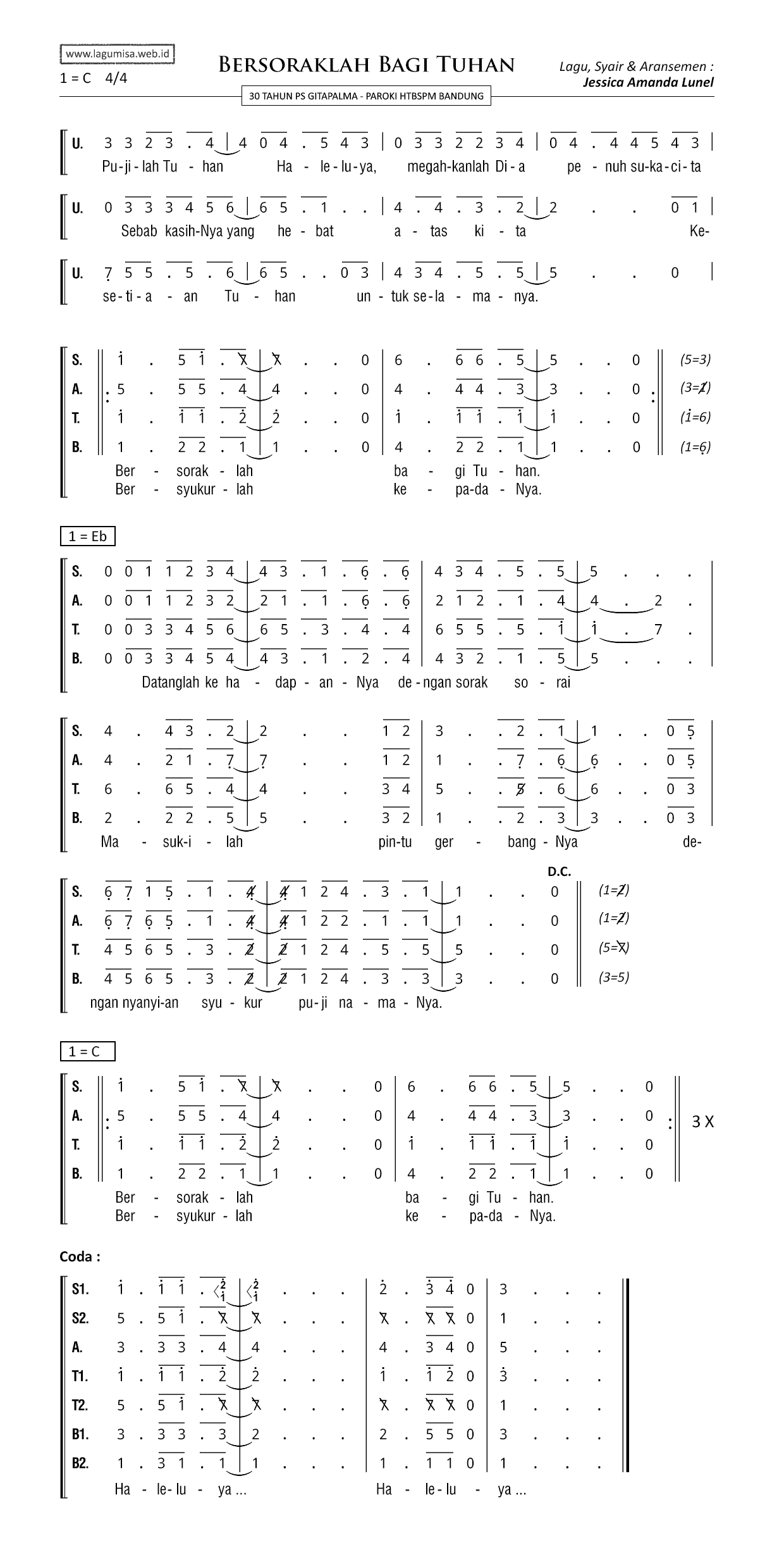 BERSORAKLAH BAGI TUHAN | Lagu, Syair, & Aransemen : Jessica Amanda Lunel | Do=C, 4/4 |