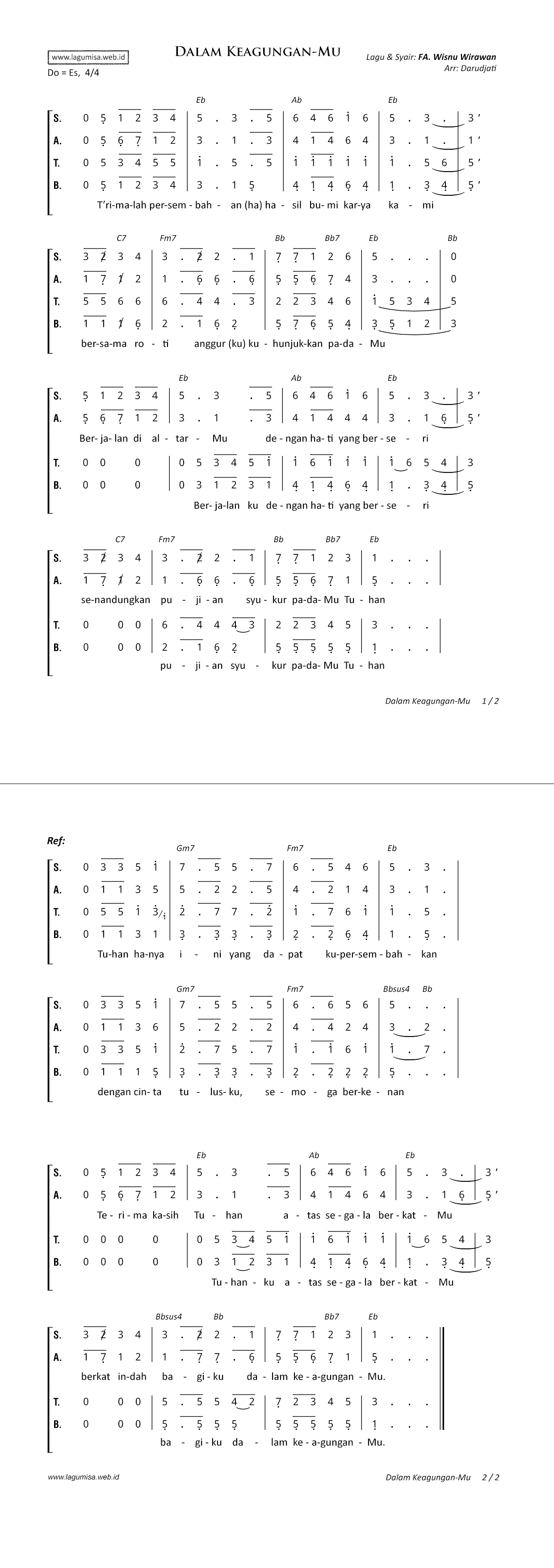 DALAM KEAGUNGAN-MU | Lagu & Syair : FA. Wisnu Wirawan | Arr : L. Darudjati | Do=Es, 4/4 | Lagu persembahan |