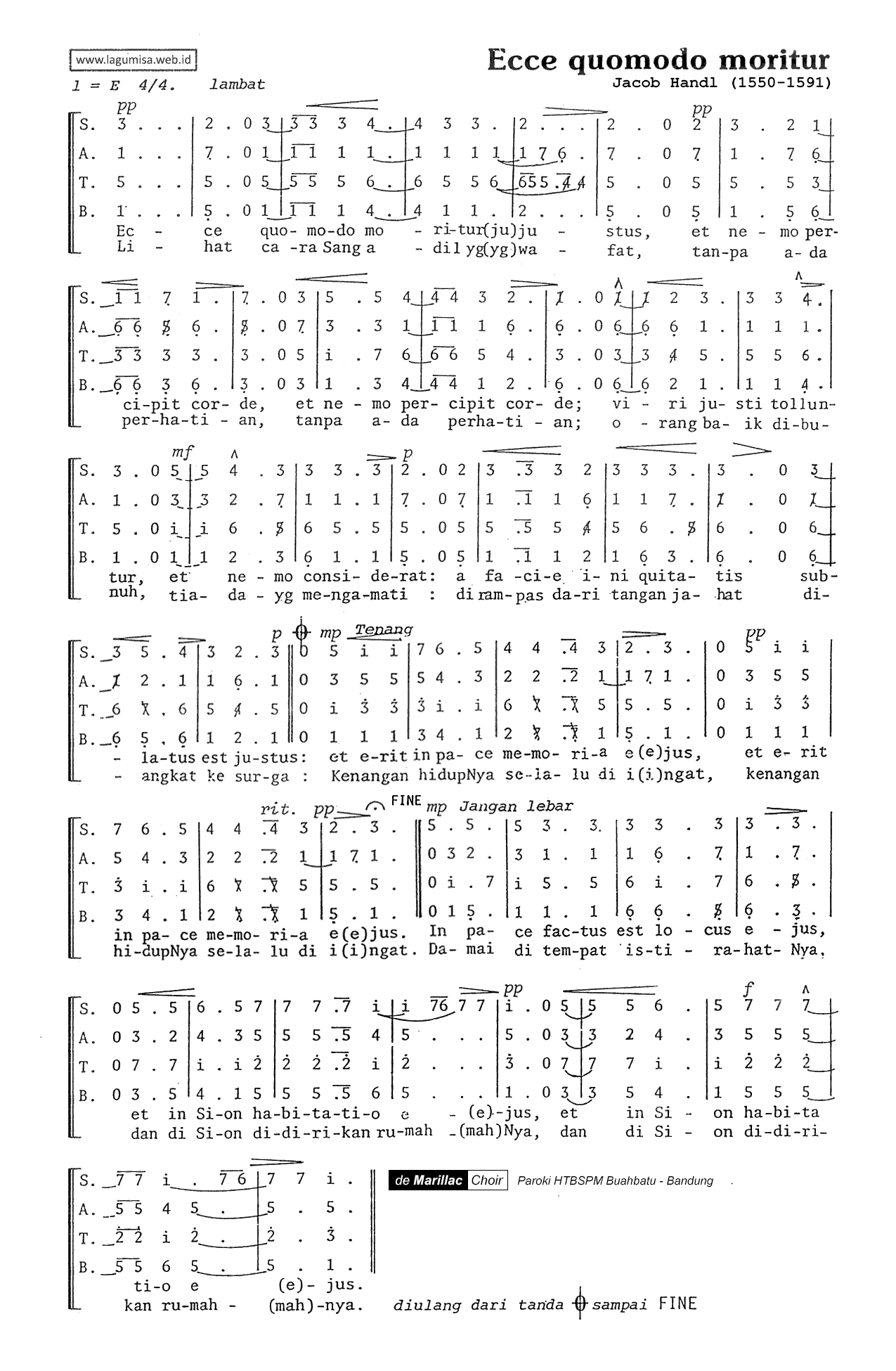 ECCE QUOMODO MORITUR Lagu : Jacob Handl Do=Es, 4/4, Lambat
