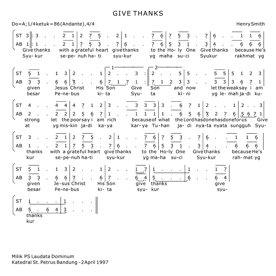 GIVE THANKS | do=A 4/4 (1/4=84) Andante | Lagu : Henry Smith |