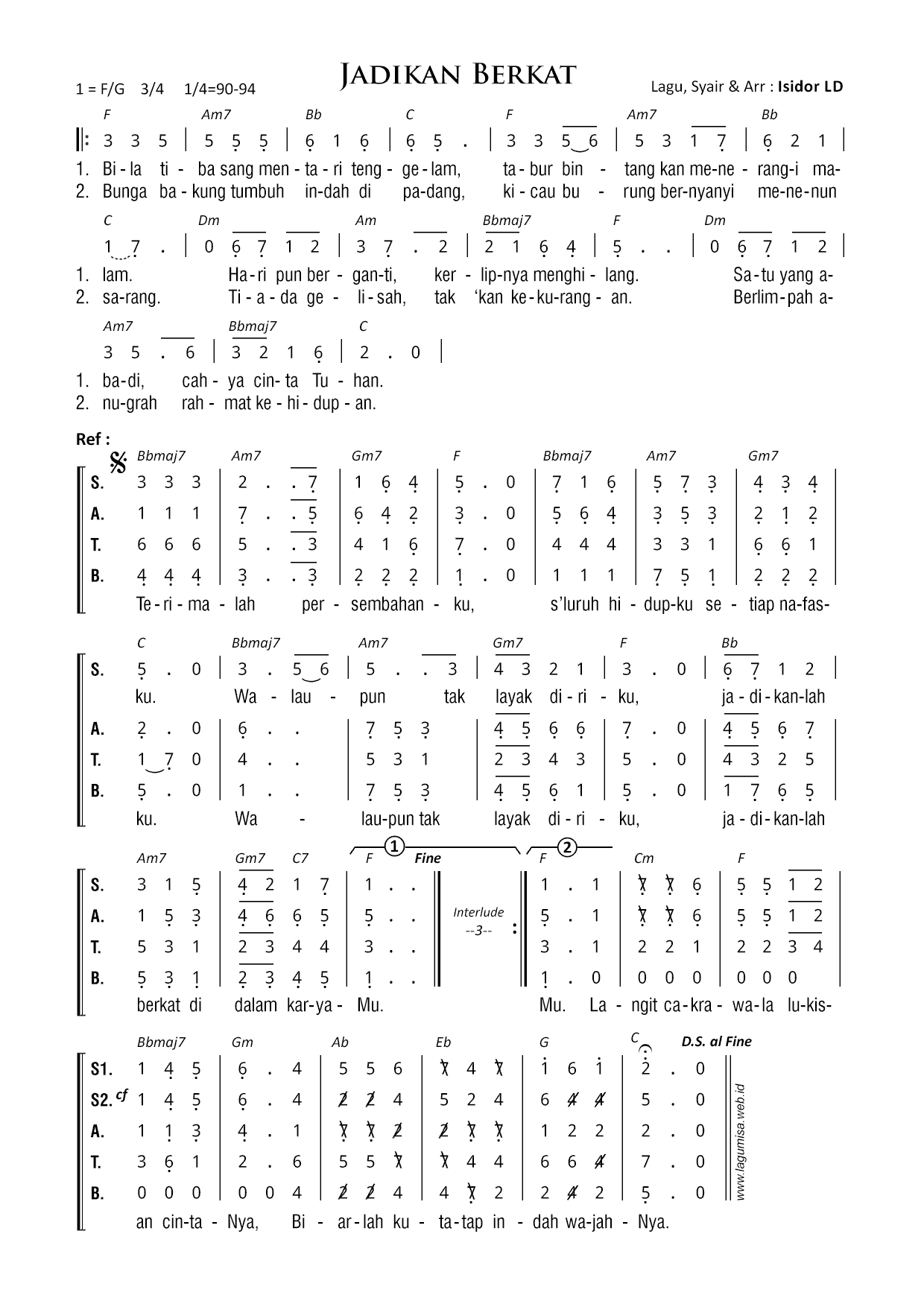 JADIKAN BERKAT | Lagu, Syair, Arr : Isidor LD | 1=F/G, 3/4, 1/4=90-94 |
