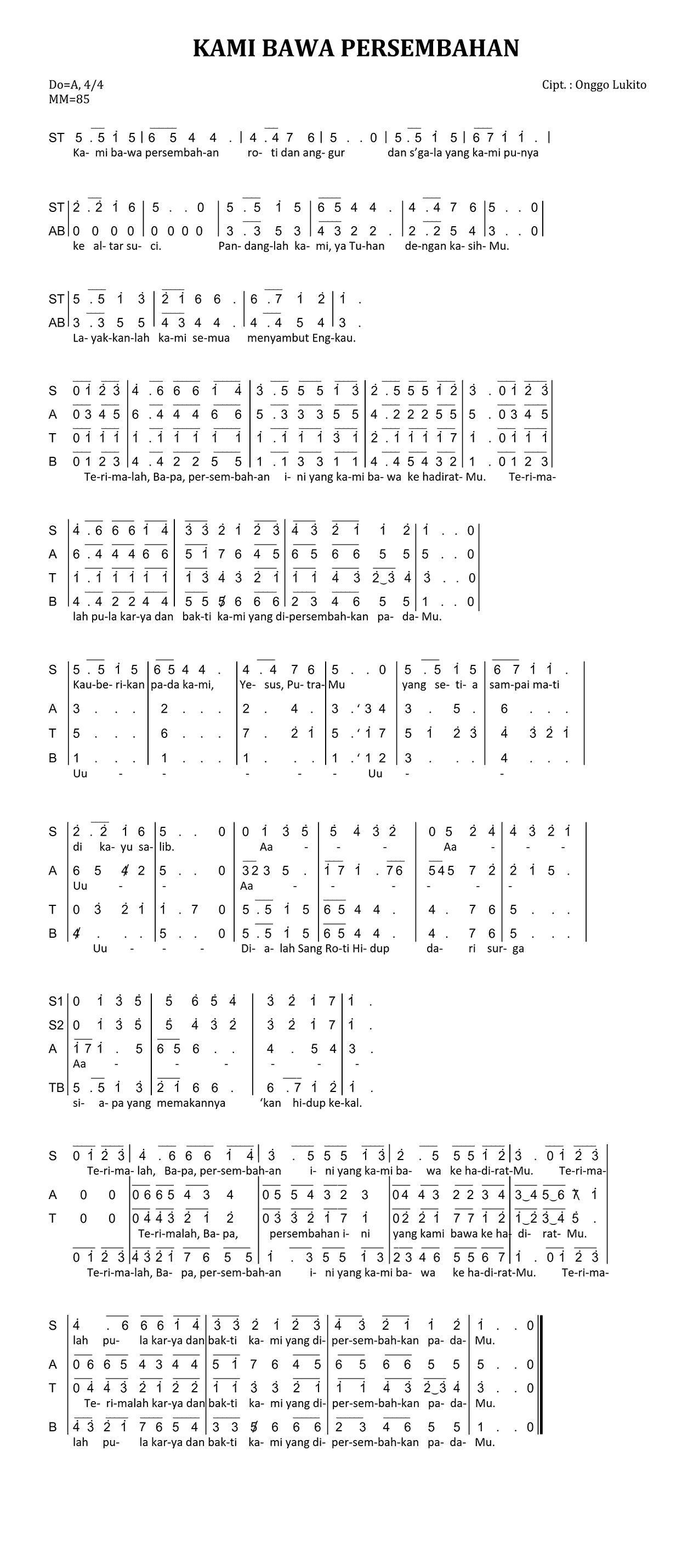 KAMI BAWA PERSEMBAHAN | Lagu & Tata suara : Onggo Lukito | Do=A, 4/4 | LAGU PERSEMBAHAN |