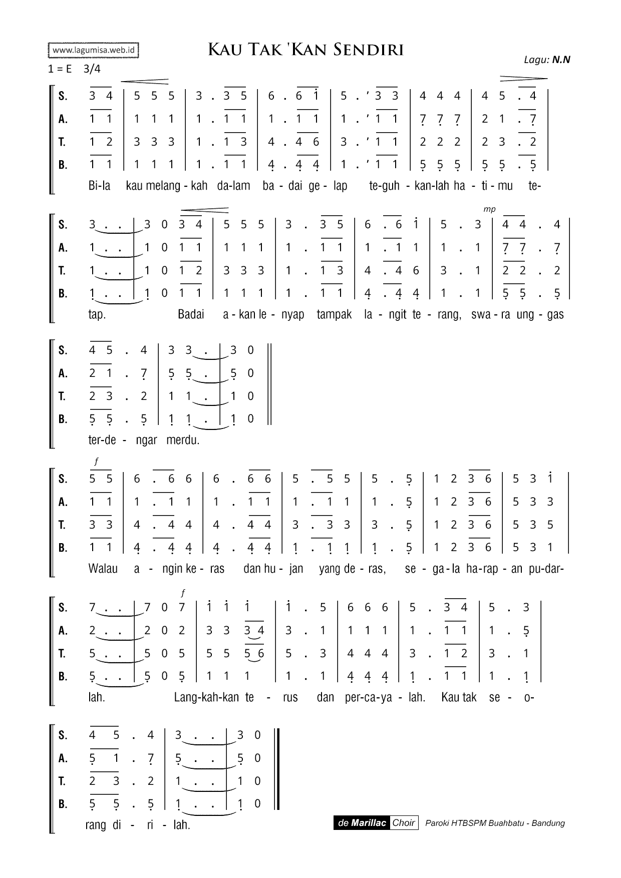 KAU TAK KAN SENDIRI | Lagu: N.N | Do=E, 3/4 |