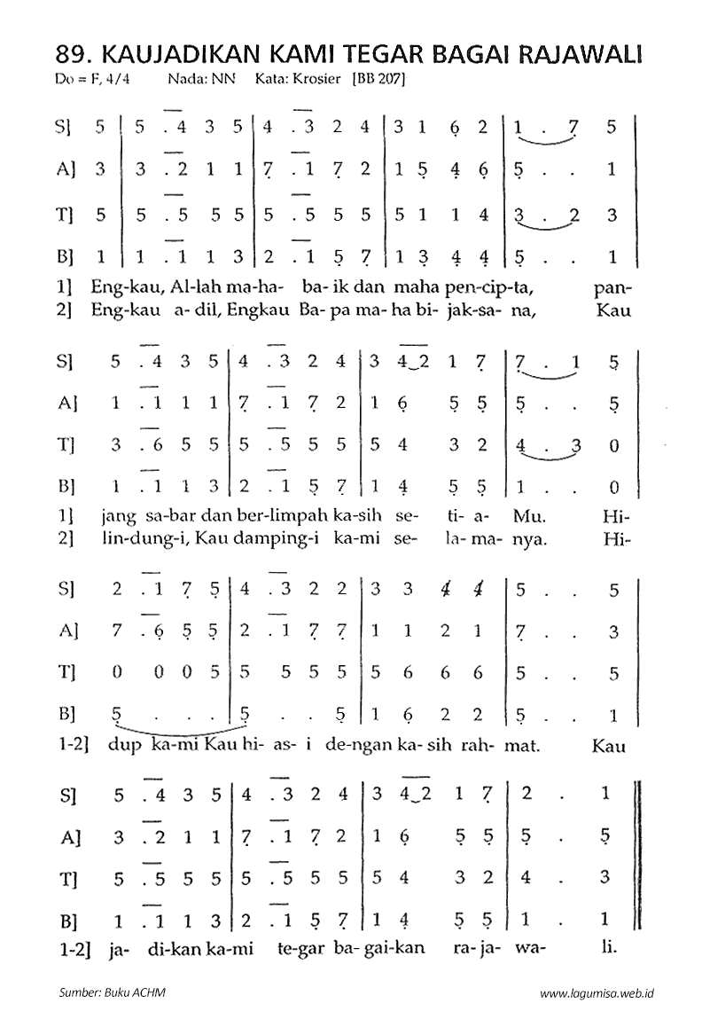 KAUJADIKAN KAMI TEGAR BAGAI RAJAWALI | Do=F 4/4 | Nada: NN | Kata: Krosier (BB 207) |