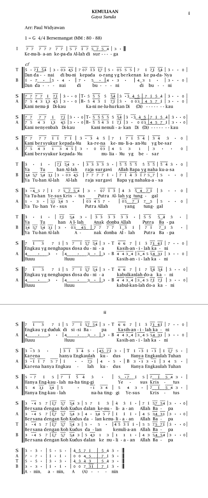 KEMULIAAN | (Gaya Sunda) | do=G 4/4 (1/4=96) Bersemangat | Lagu: Sukamto | Arr: Paul Widyawan |