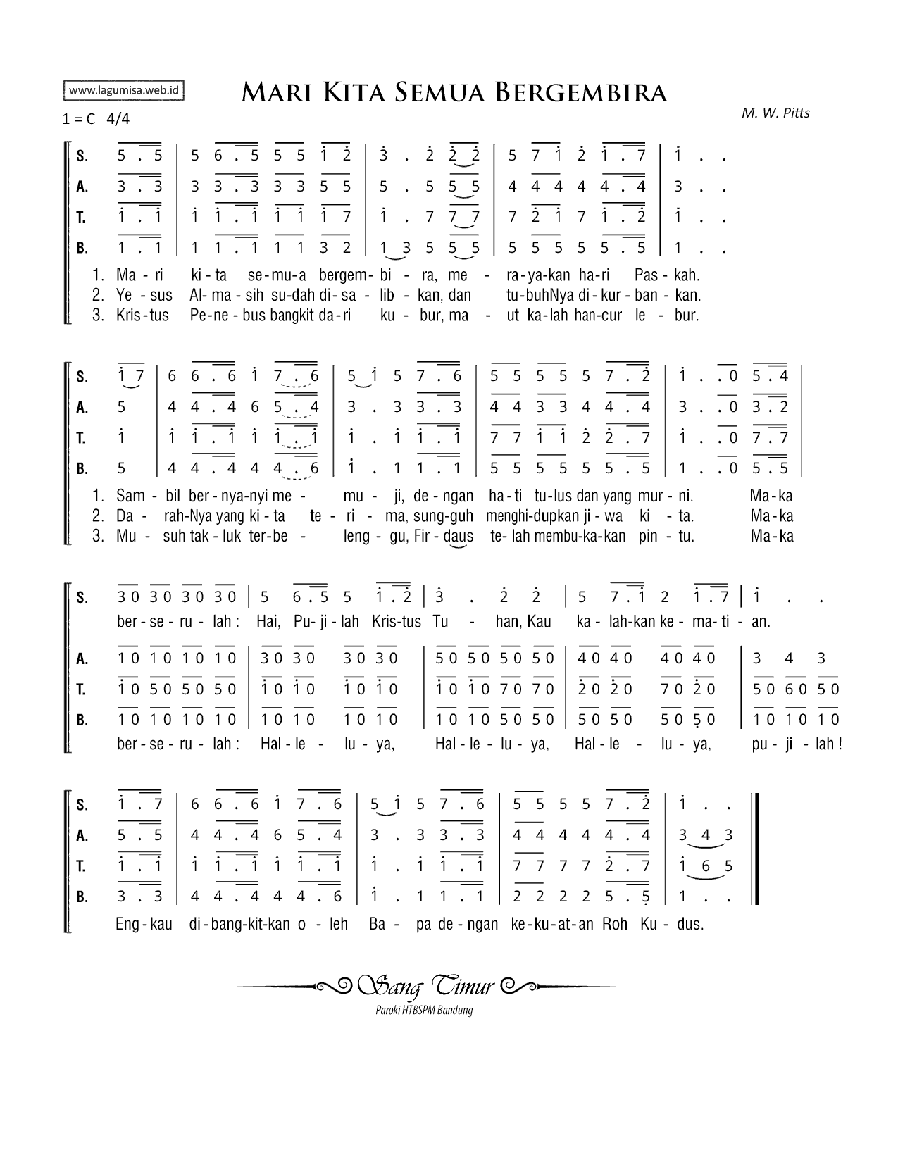 MARI KITA SEMUA BERGEMBIRA | Lagu : M. W. Pitts | Do=C, 4/4 |