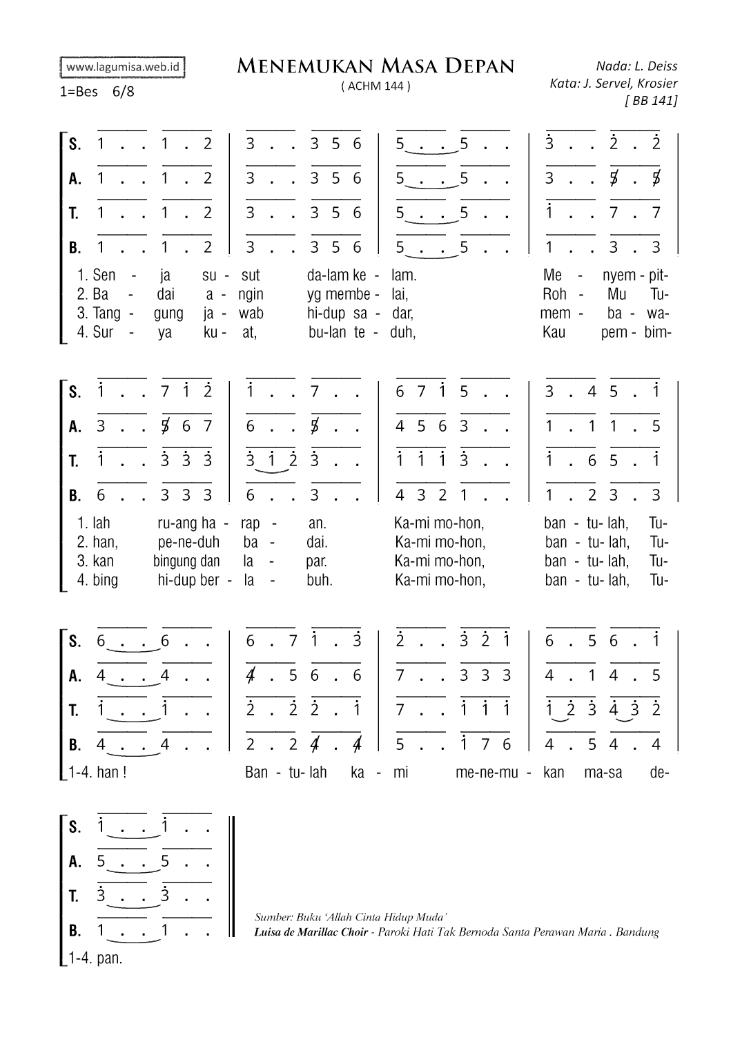 MENEMUKAN MASA DEPAN ACHM 144 Do=Bes, 6/8 | Nada: L.Deiss | Kata: J.Servel, Krosier [BB 141]