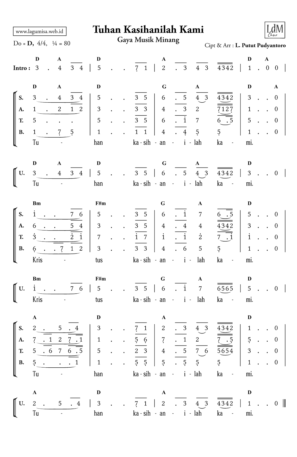 TUHAN KASIHANILAH KAMI | Lagu Ordinarium Gaya Musik Minang | Cipt & Arr : L Putut Pudyantoro | Do=D, 4/4, 1/4=80 | UNTUK KALANGAN SENDIRI |