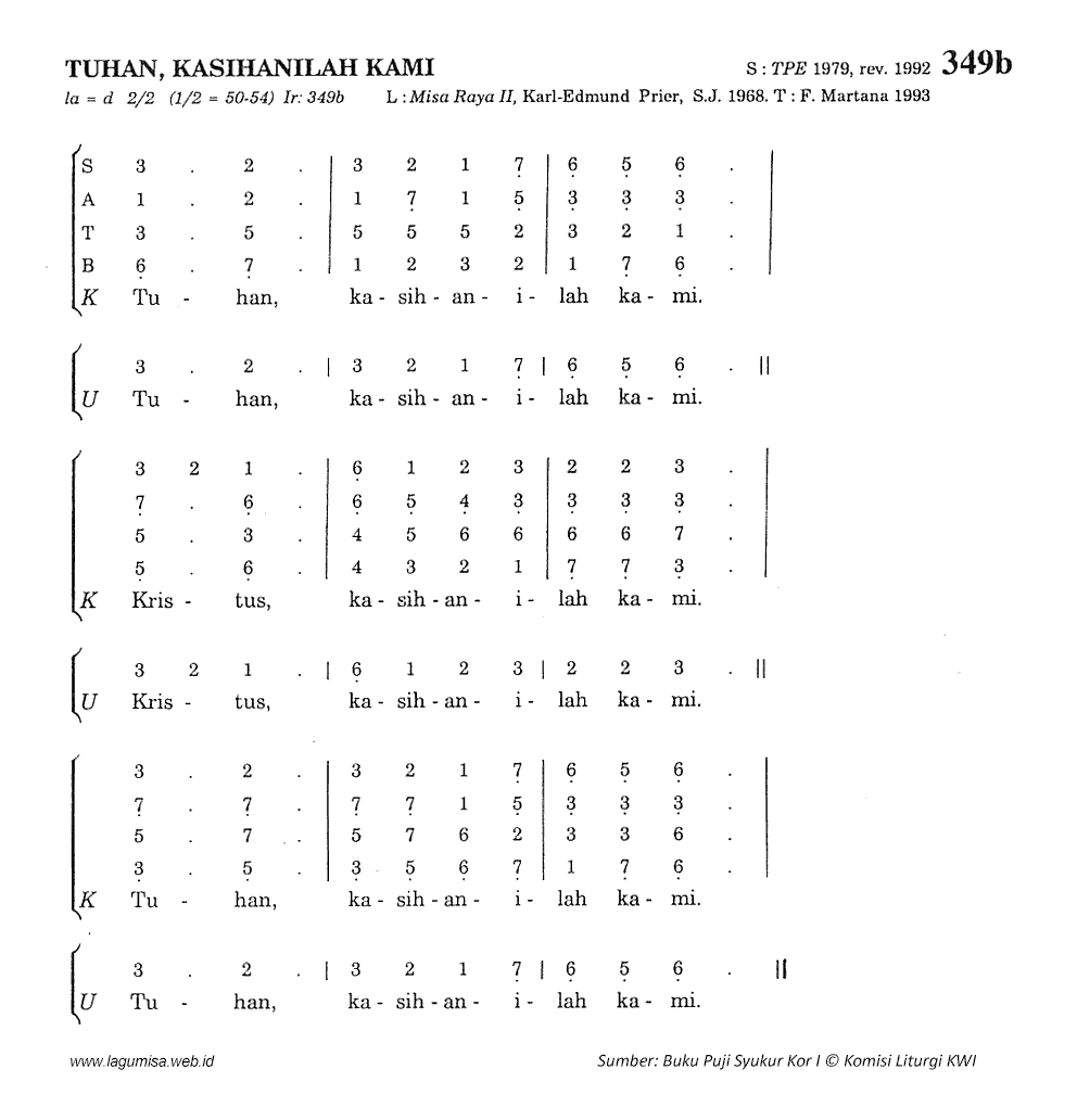 PS-349b | TUHAN KASIHANILAH KAMI | MISA RAYA II | Lagu: Karl-Edmund-Prier, SJ | Arr: F Martana | la=d; 2/2 (1/2=50-54) |
