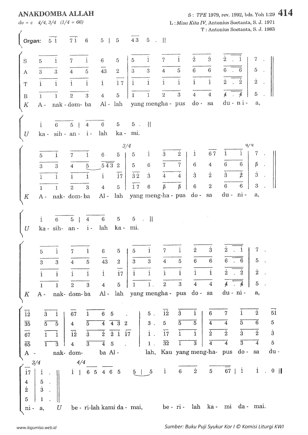 PS-414 | ANAKDOMBA ALLAH | MISA KITA IV | do=c 4/4,3/4 (1/4=66) |