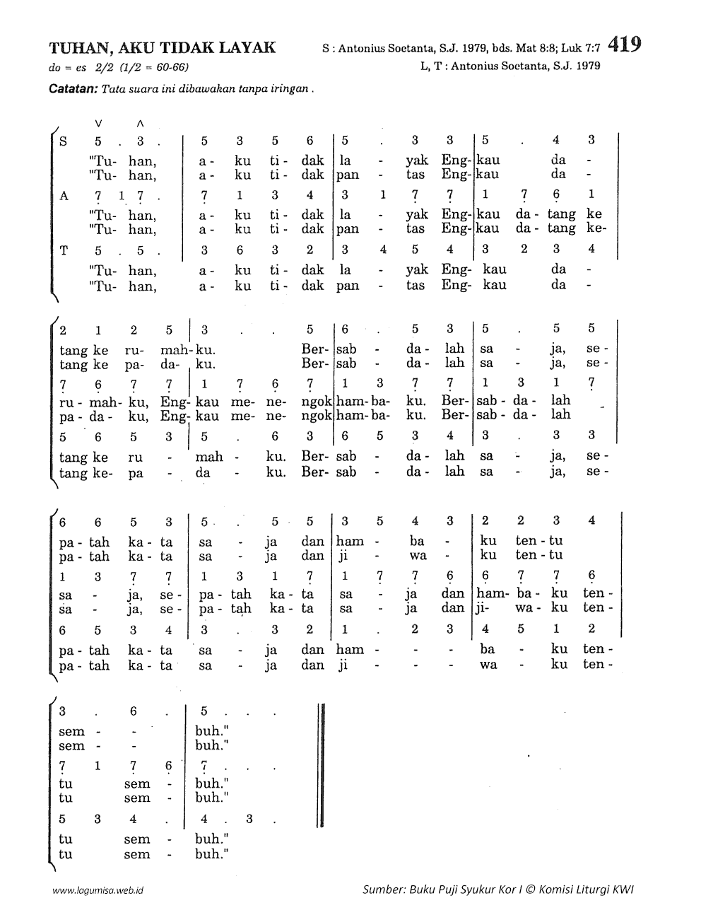 PS-419 | TUHAN AKU TIDAK LAYAK | Do=Es 2/2 (1/2=60-66) |
