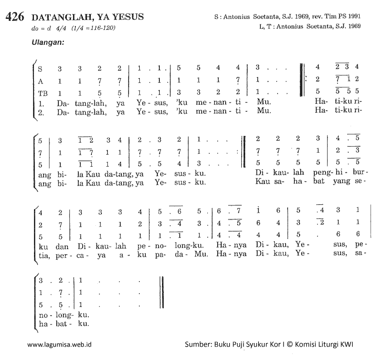 PS-426 | DATANGLAH, YA YESUS | do=D 4/4 (1/4 = 120) |