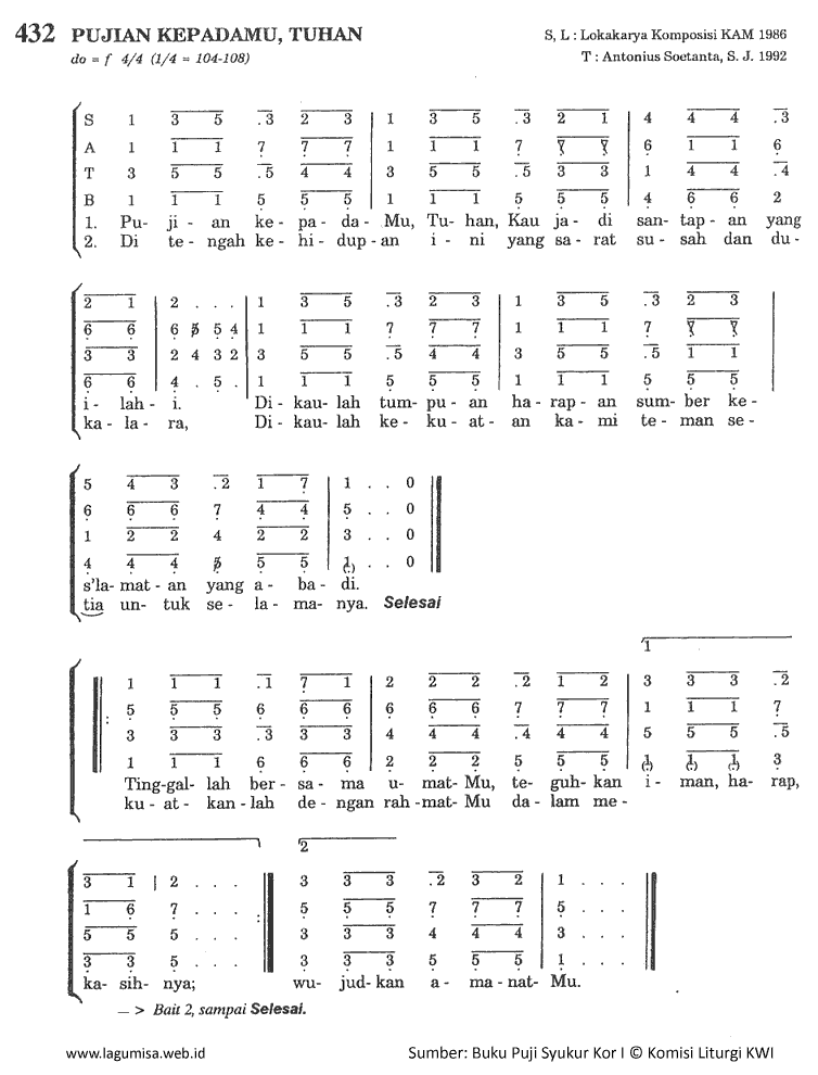 PS-432 | PUJIAN KEPADAMU, TUHAN | do=f 4/4 1/4=108 |