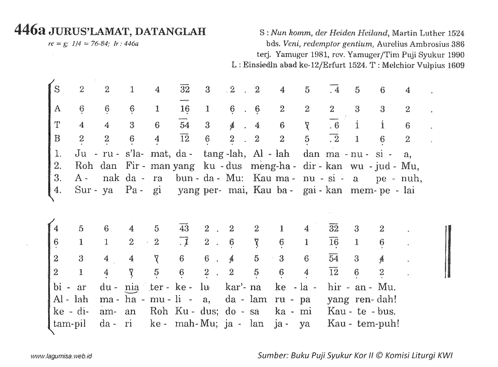 PS-446a | JURUS'LAMAT, DATANGLAH | Veni, Redemptor Gentium | re=g; 1/4=76-84 |
