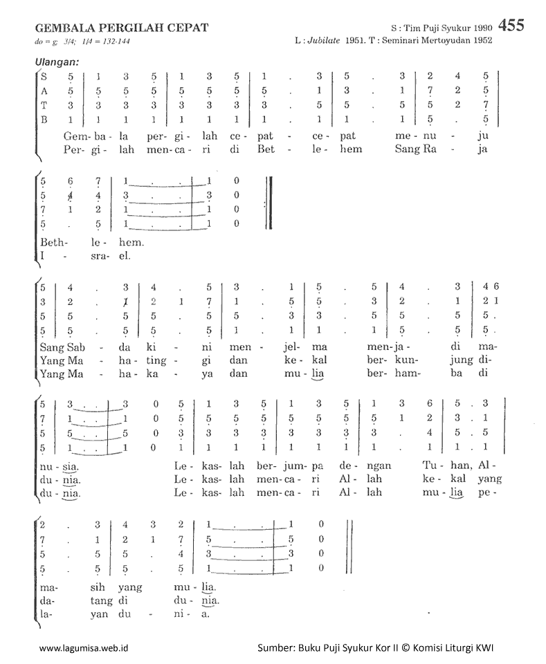 | Lirik Chord Lagu Misa Teks Partitur SATB MP3 Koor Puji Syukur Paduan Suara Katolik |