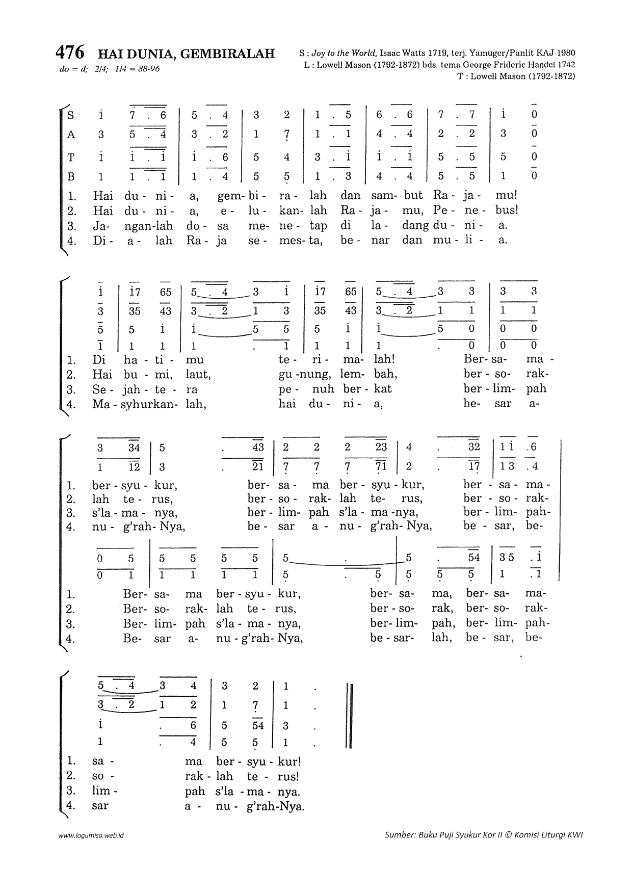 1. Hai dunia, gem - bi-ra-lah dan sambut Rajamu!