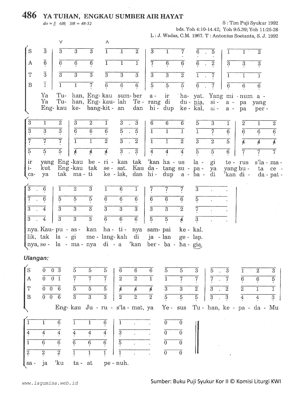 PS-486 | YA TUHAN, ENGKAU SUMBER AIR HAYAT | do=f 6/8 (3/8=48-52) |