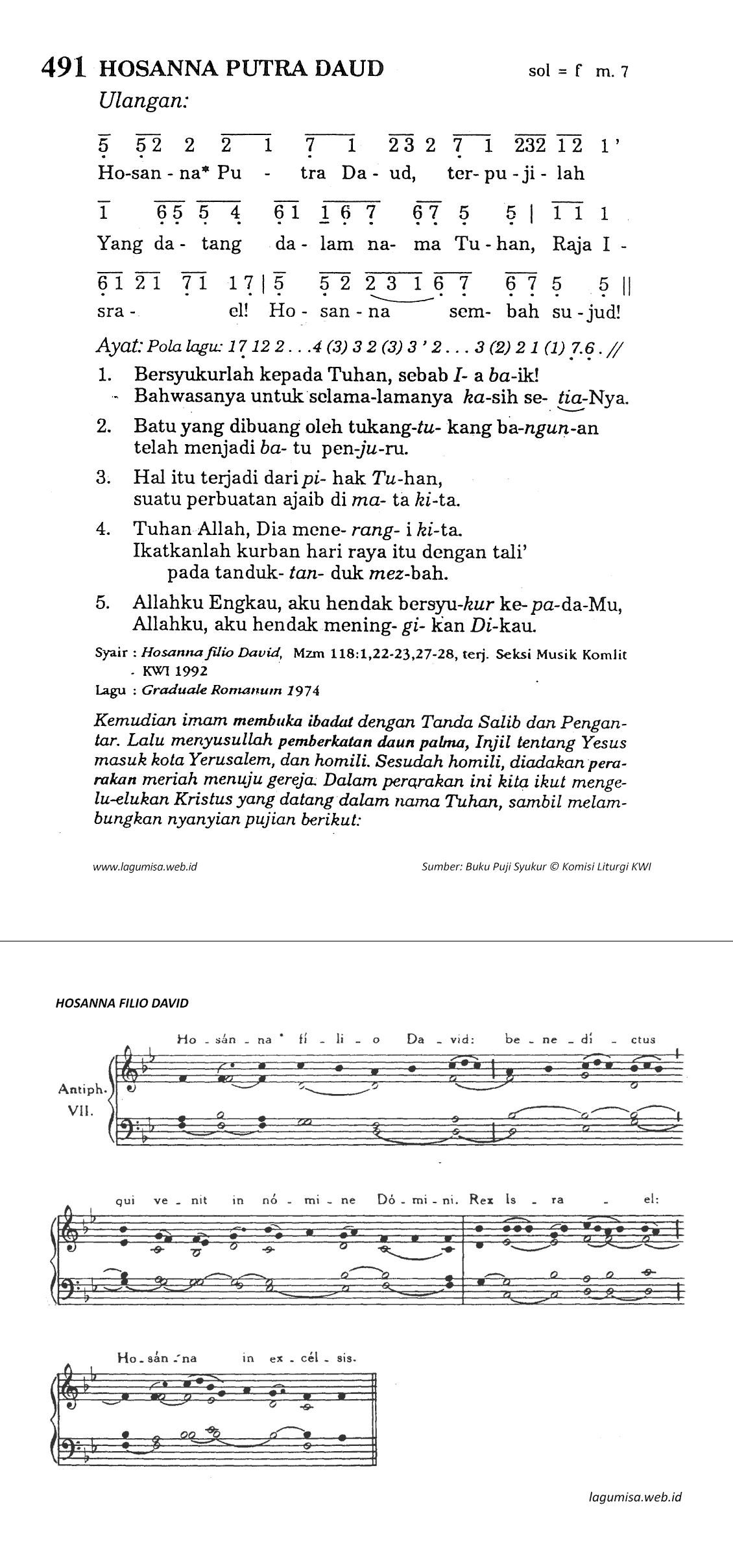 PS-491 | HOSANNA PUTRA DAUD (HOSANNA FILIO DAVID) | Minggu Palma | sol=es m.7 | Gregorian |