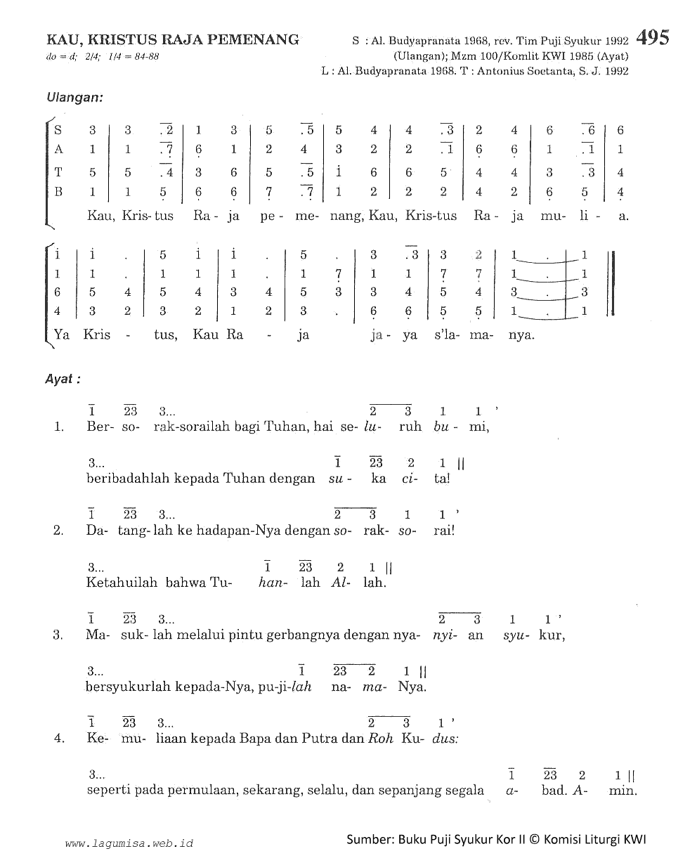 PS-495 | KAU, KRISTUS RAJA PEMENANG | do=d 2/4 1/4=84-88 |