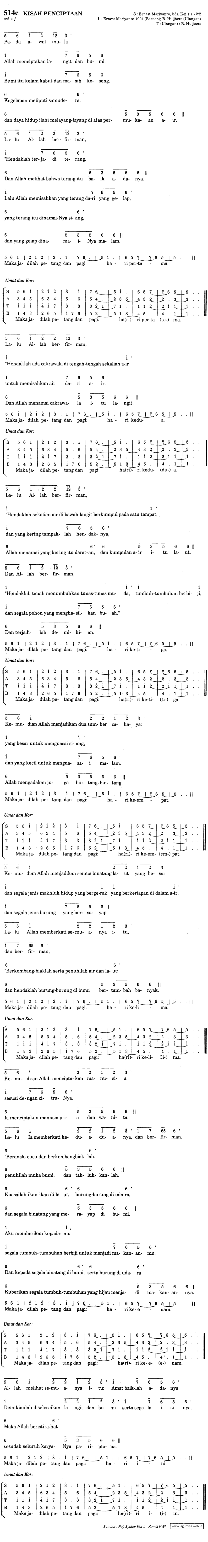 PS-514c | KISAH PENCIPTAANBACAAN PERTAMA MALAM PASKAH | KEJADIAN 1:1 - 2:2 | L: Ernest Maryanto, B. Huijbers (ulangan) | T: B. Huijbers (ulangan) | Ulangan: PS-866 | sol = f |