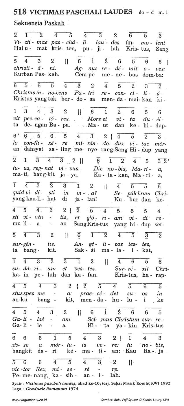 PS-518 | VICTIMAE PASCHALI LAUDES | Sekuensia Paskah | re=d m.1 |