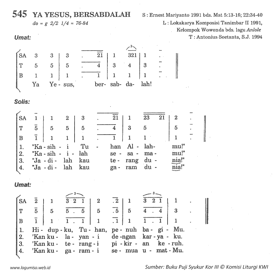 | Lirik Chord Lagu Misa Teks Partitur SATB MP3 Koor Puji Syukur Paduan Suara Katolik |