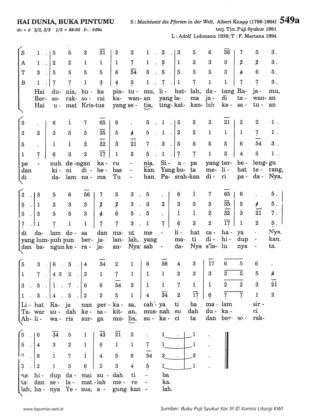 PS-549a HAI DUNIA BUKA PINTUMU do=d; 2/2, 3/2; 1/2=88-92