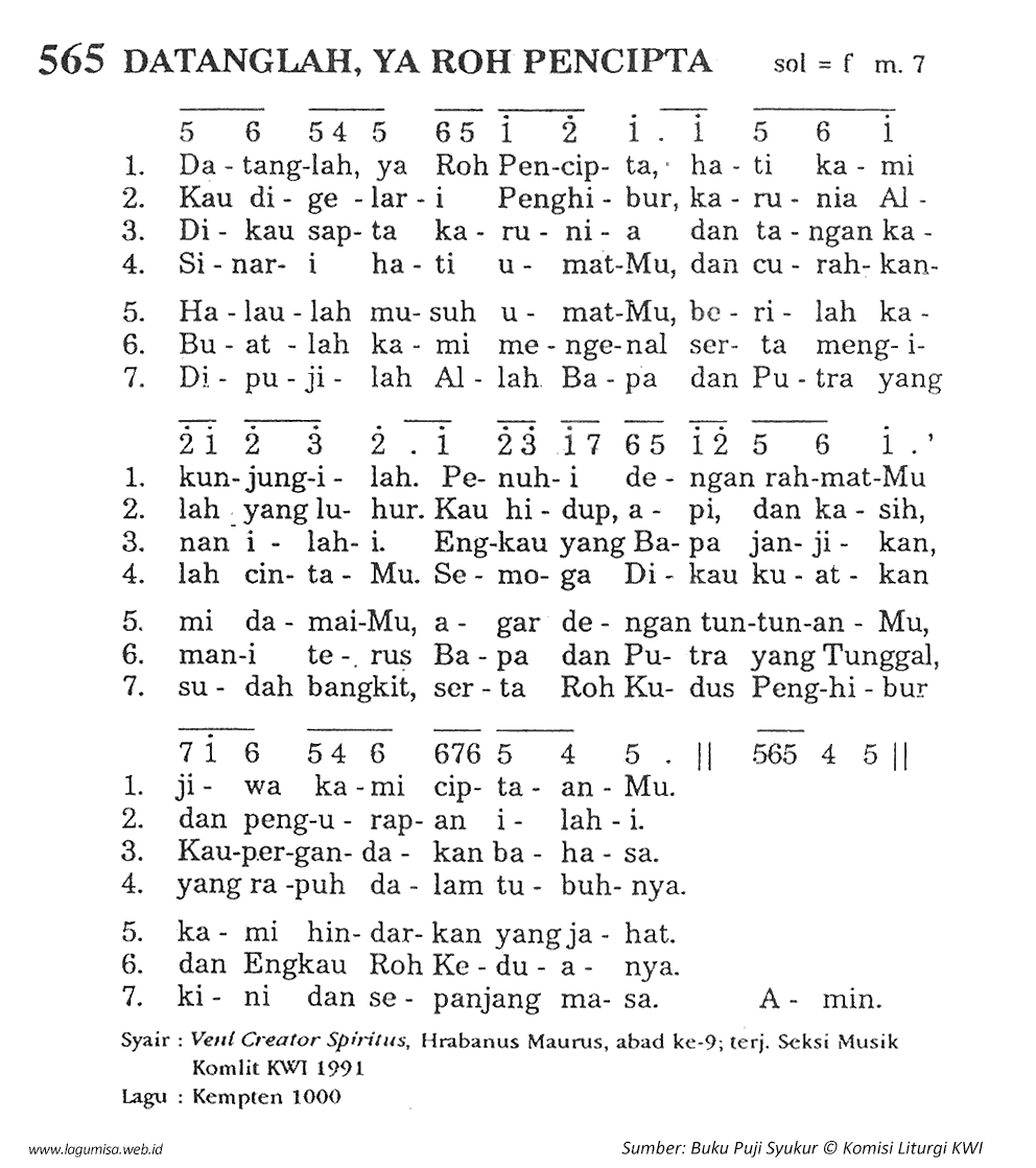 PS-565 | DATANGLAH, YA ROH PENCIPTA | VENI CREATOR SPIRITUS | sol=f m.7 | GREGORIAN |