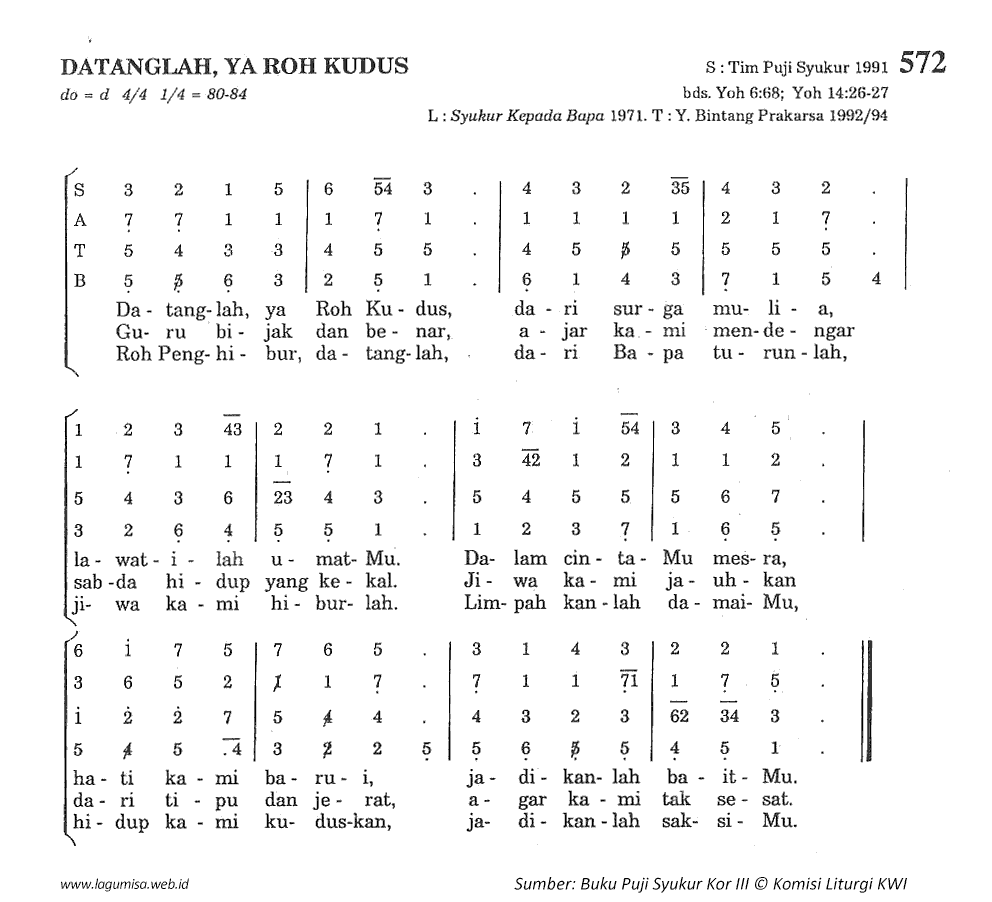 PS-572 | DATANGLAH, YA ROH KUDUS | do=d 4/4 (1/4=80-84) |