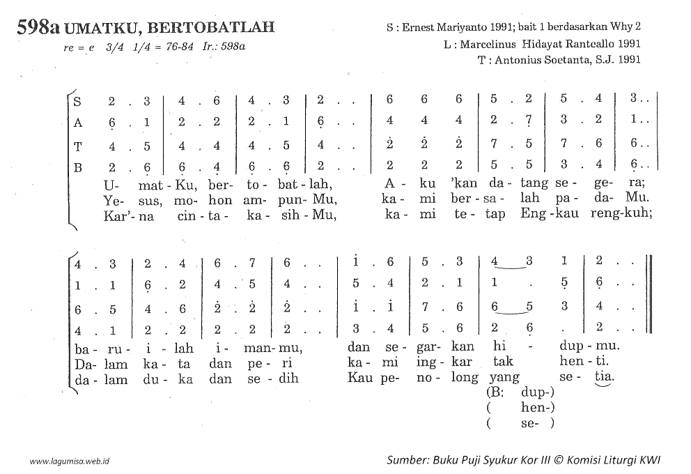 | Lirik Chord Lagu Misa Teks Partitur SATB MP3 Koor Puji Syukur Paduan Suara Katolik |