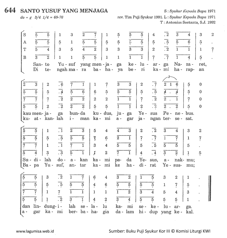 PS-644 | SANTO YUSUF YANG MENJAGA | do=g 3/4 1/4=76 |