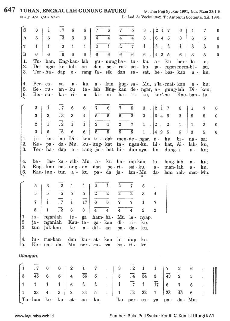 | Lirik Chord Lagu Misa Teks Partitur SATB MP3 Koor Puji Syukur Paduan Suara Katolik |