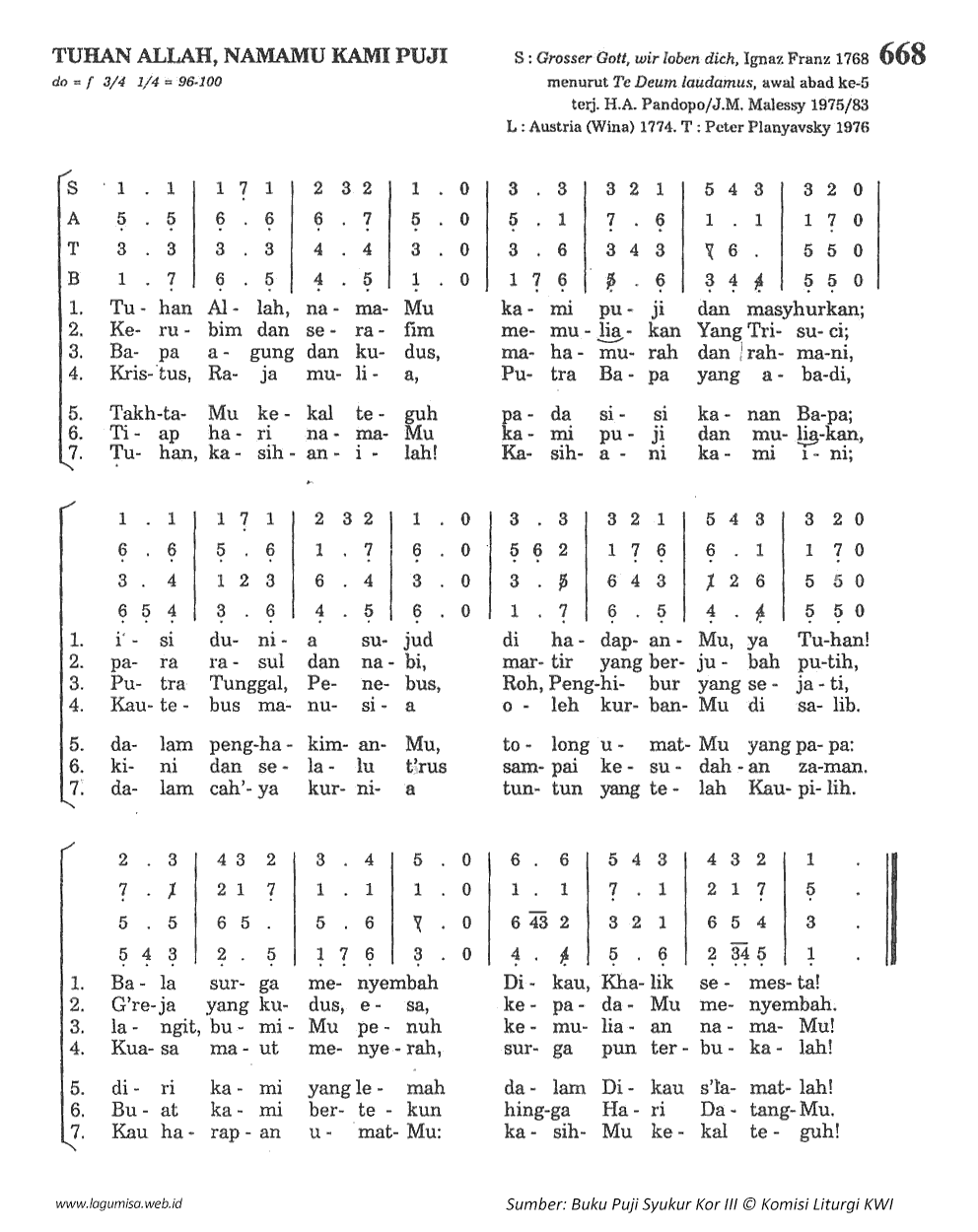 PS-668 | TUHAN ALLAH, NAMAMU KAMI PUJI | do=f; 3/4; 1/4=96-100 |