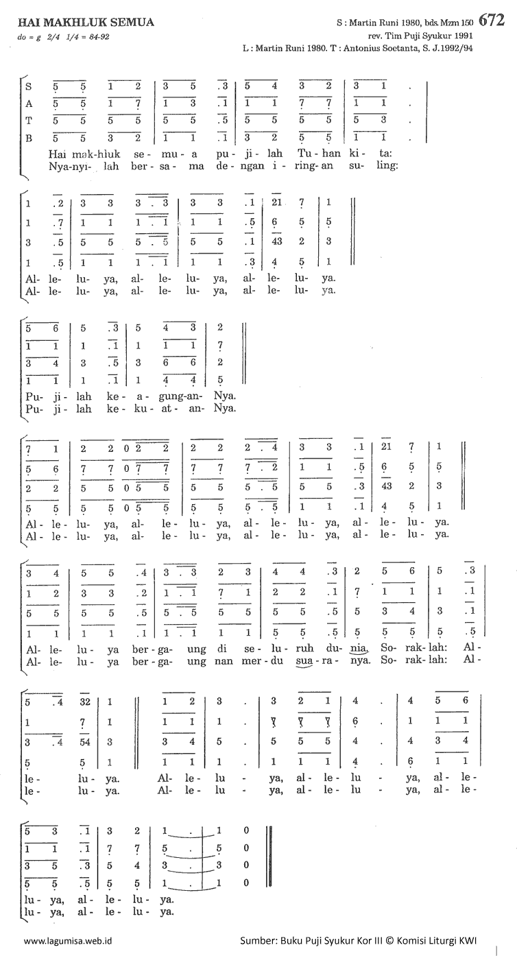 Lirik Chord Lagu Misa Teks Partitur SATB MP3 Koor Puji Syukur Paduan Suara Katolik |