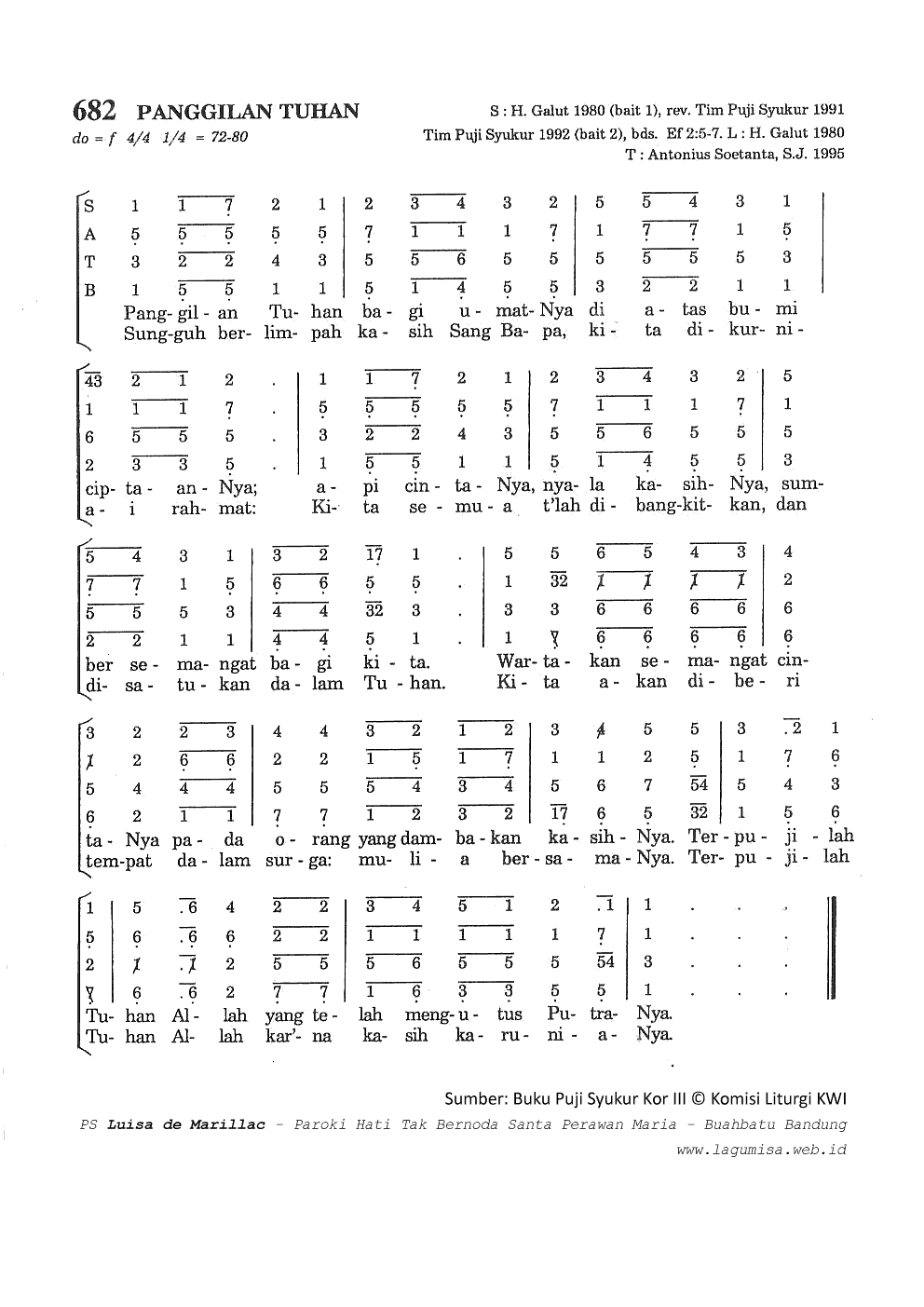 PS-682 | PANGGILAN TUHAN | do=f 4/4 1/4=80 |
