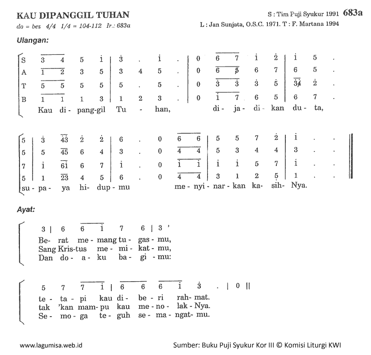 PS-683a | KAU DIPANGGIL TUHAN | do=bes 4/4 1/4=112 |