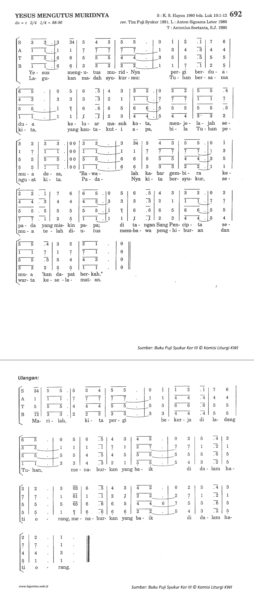 PS-692 | YESUS MENGUTUS MURIDNYA | do=C; 2/4; 1/4=88-96 |