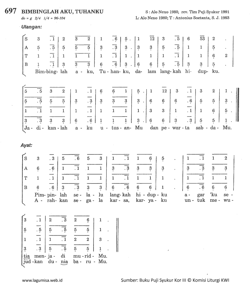 PS-697 | BIMBINGLAH AKU, TUHANKU | do=g 2/4 1/4=104 |