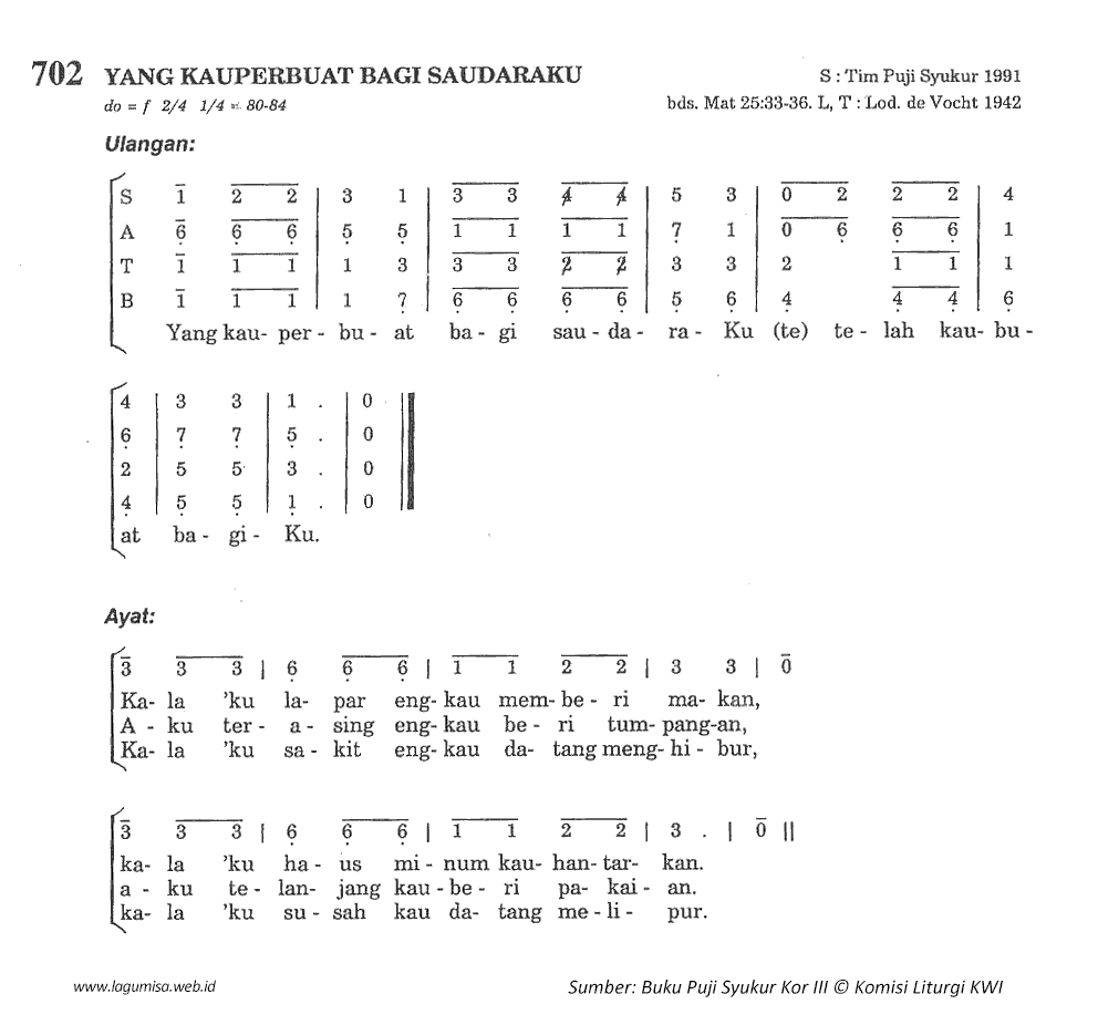 PS-702 | YANG KAUPERBUAT BAGI SAUDARAKU | do=f; 2/4; 1/4=80-84 |