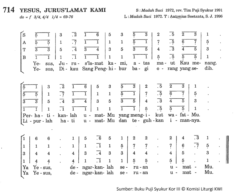 PS-714 | YESUS, JURUS'LAMAT KAMI | do=f 3/4 4/4 (1/4=76) |