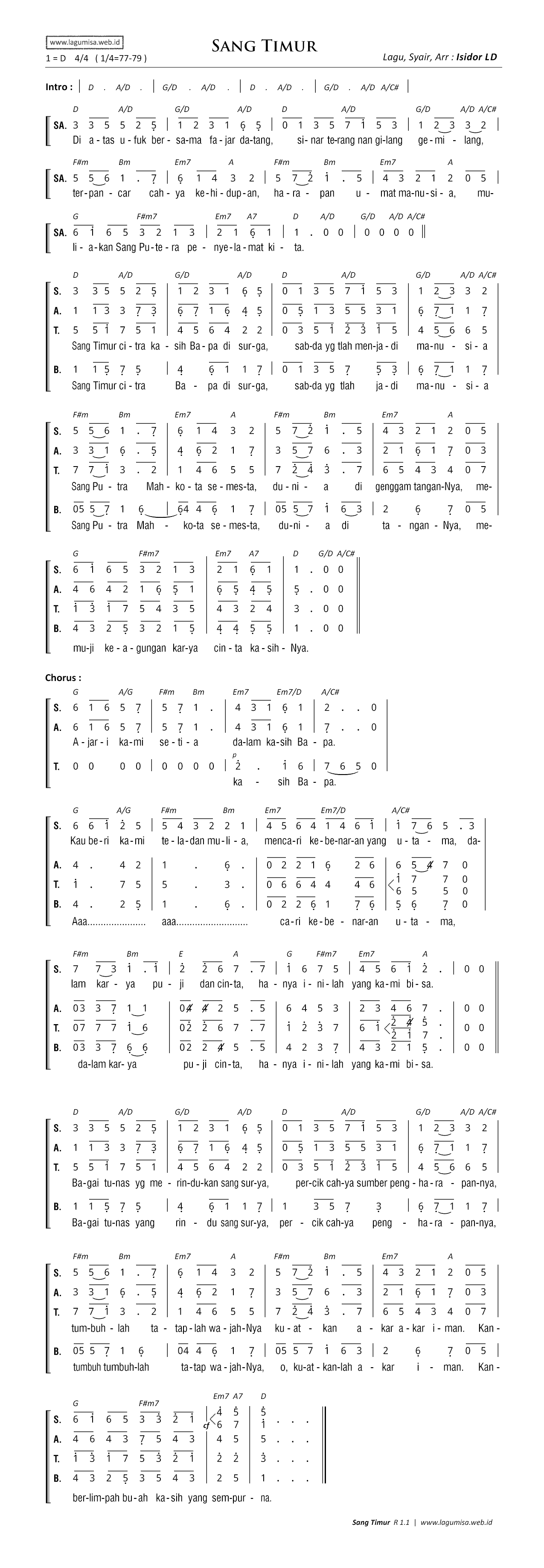 SANG TIMUR | Lagu, Syair & Aransemen : Isidor LD | Do=D, 4/4 |