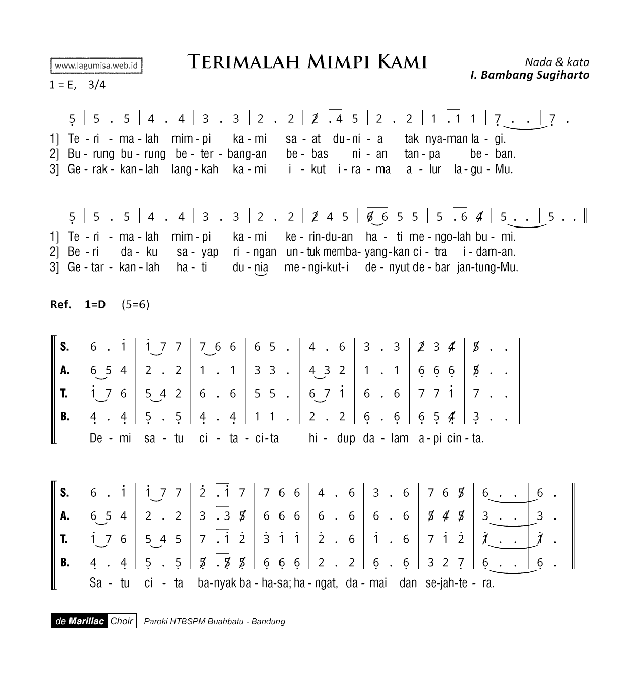 TERIMALAH MIMPI KAMI | Nada & Kata: Ign. Bambang Sugiharto | ACHM 183 | 1=E, 3/4 |